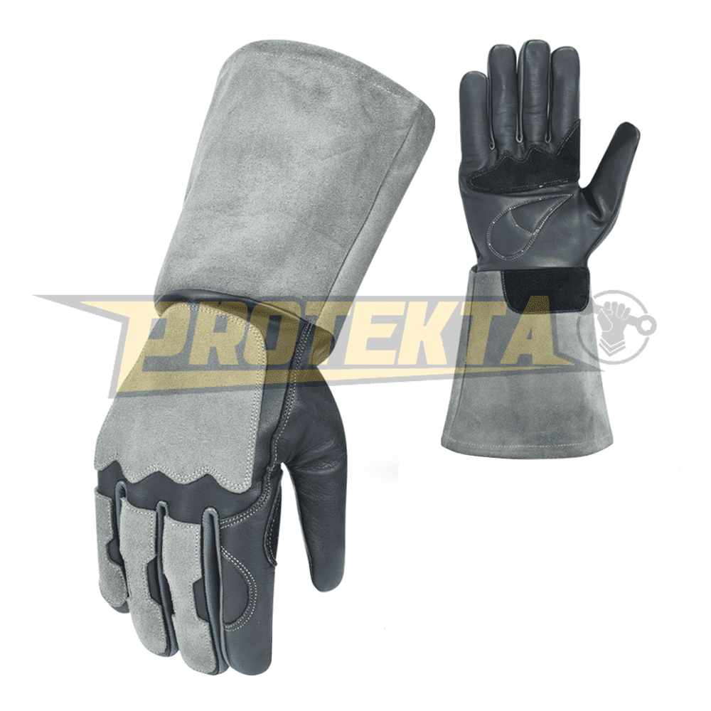 Welding gloves are heavy-duty protective gloves designed to shield hands from extreme heat, sparks, and sharp metal edges during welding. Made from heat-resistant materials like leather, they provide durability, flexibility, and insulation for safe handling of welding tools and materials.